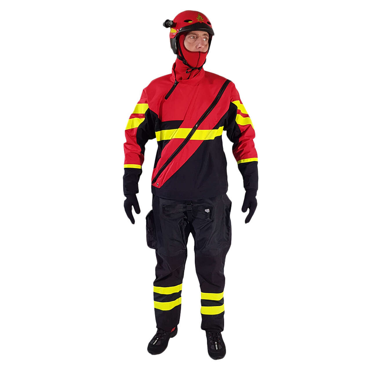 Idrocostume concepito per l'intervento in ambiente acquatico, realizzato in tessuti misti e a spessori differenziati per garantire la massima robustezza e comfort.