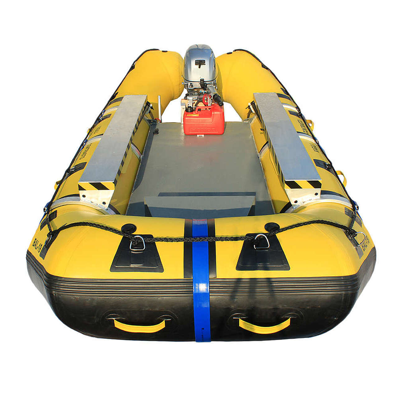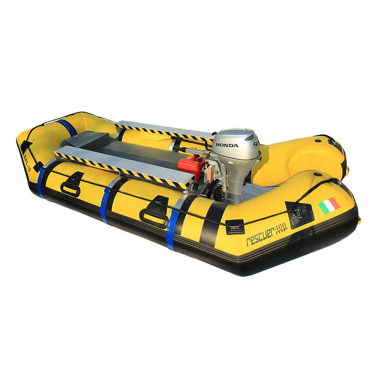 Un mezzo che mantiene le caratteristiche di leggerezza e grande manovrabilita' tipiche dei battelli da rafting, incrementando pero' la stabilita' e dotandosi di un piano di calpestio rigido, così da garantire un solido punto di appoggio sia agli operatori che ai pericolanti imbarcati.