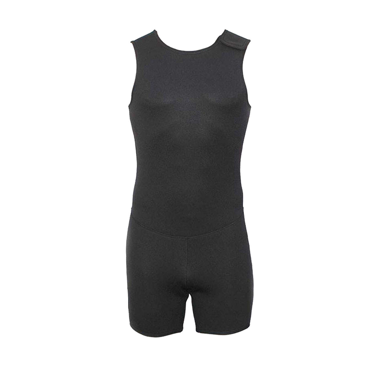 Muta corta in neoprene da 3 mm foderato con plush interno. Chiusura in spalla con velcro, parti giuntate con incollaggio e cuciture non passanti.