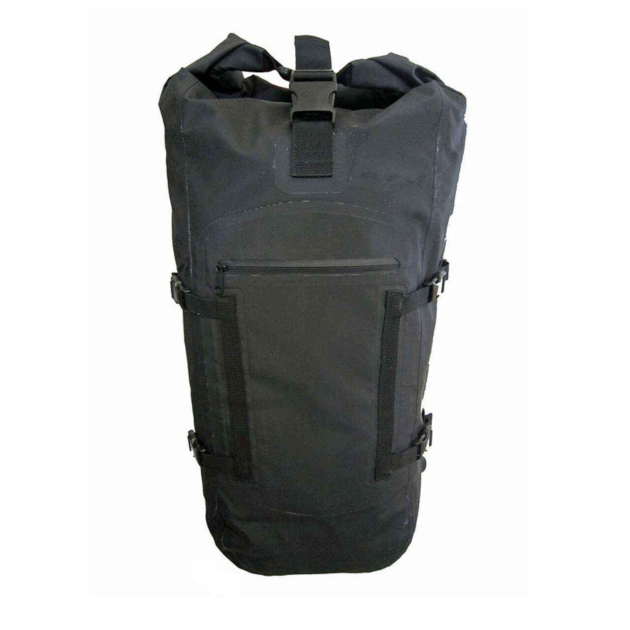 Zaino stagno con chiusura ad avvolgimento, tessuto PVC alta resistenza, dotato di spallacci regolabili e imbottiti, doppia chiusura anteriore in vita, chiusura la petto regolabile in altezza, schienale con imbottitura confort.
