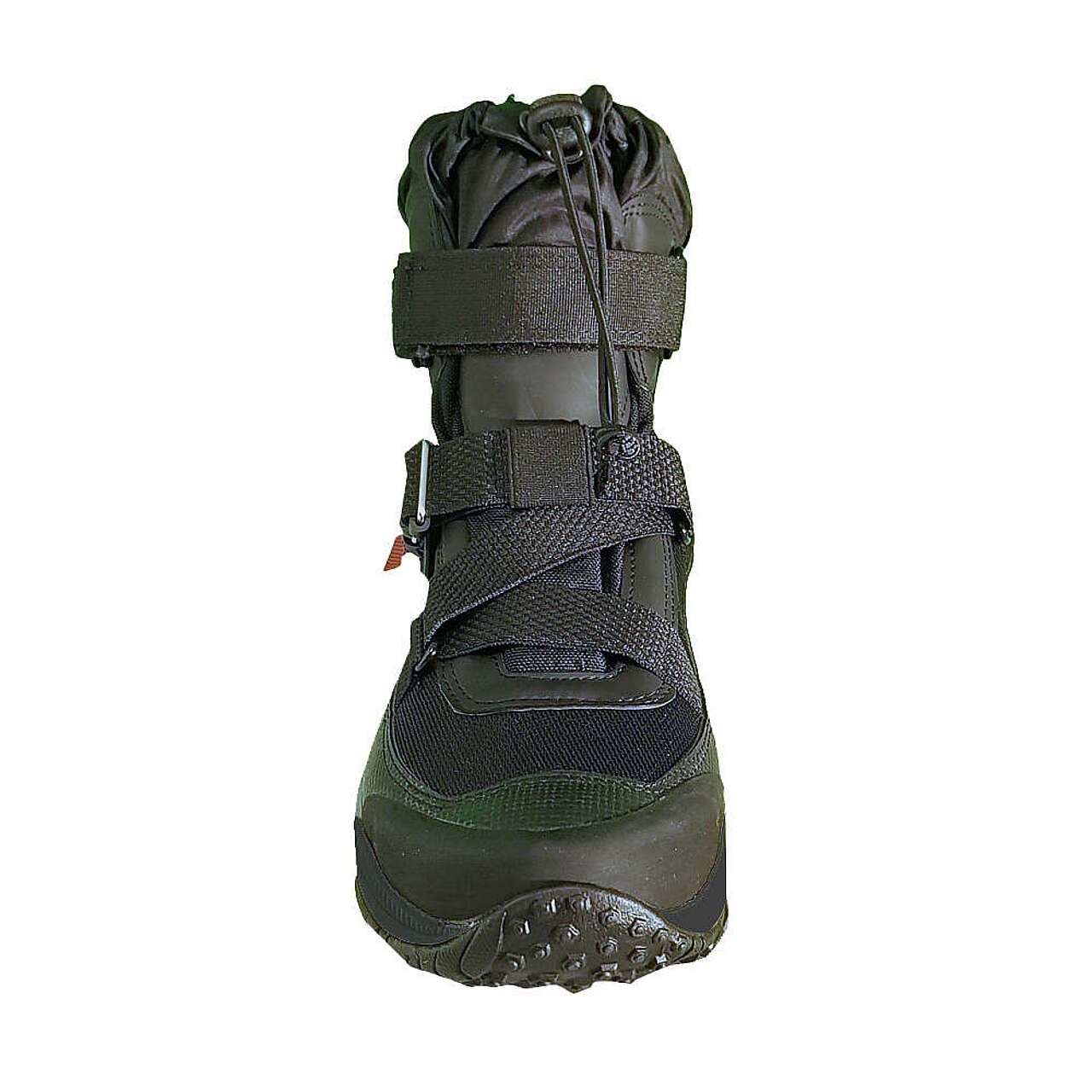 La tomaia è dotata di fori svuotamento acqua e rinforzata lungo il bordo esterno con una fascia di gomma incollata e priva di cuciture. Ghetta regolabile e chiusura con fettuccia a doppio incrocio. Dispositivo di chiusura/apertura rapido brevettato di tipo magnetico. Suola dedicata VIBRAM con mescola specifica per l’#039;92acqua.